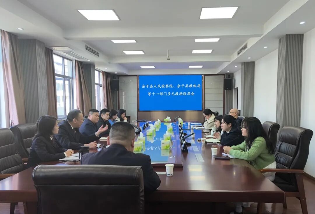 近日,余干县多元救助联席会议在县检察院召开,余干县人民检察院党组副书记、副检察长周俊出席会议并讲话。县检察院、县教体局、县民政局、县人社局、县退役军人事务局、县乡村振兴局、县医保局、县总工会、县妇联、县残联、团县委等11家单位负责司法救助与社会救助衔接工作的同志参加了此次会议。