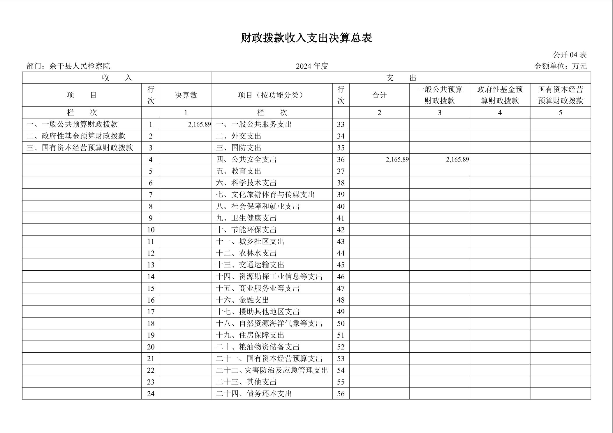 余干县人民检察院2024年度部门决算